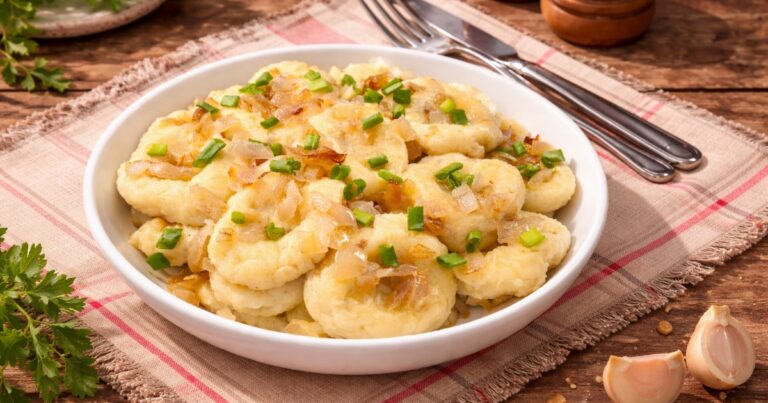 Bramborové knedlíky s cibulkou patří k těm receptům, které se v rodinách dědí spíš vyprávěním než přesnými gramážemi. Každý je dělá trochu jinak, každý si pamatuje jinou vůni z kuchyně své babičky. Vznikly z obyčejné potřeby nasytit rodinu z toho, co bylo po ruce – brambory, mouka, vejce, cibule. Žádná velká věda, žádný luxus, a přesto jídlo, na které se nezapomíná.