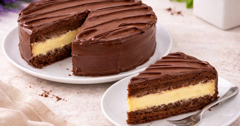 Tenhle dort stojí na kontrastu chutí a textur, které spolu fungují naprosto přirozeně. Kakao dodává hloubku a lehkou hořkost, pudinkový krém přináší hebkost a vanilkovou kulatost, poleva všechno spojí do jednoho soudržného celku. Výsledek nepůsobí těžce ani přeslazeně, spíš tak, že si klidně dáte další kousek, aniž byste to plánovali. A právě v tom je jeho kouzlo – nesnaží se ohromit, jen poctivě chutná.