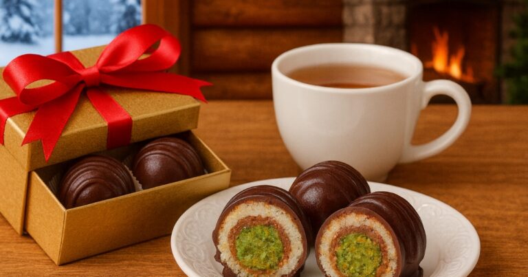 Tahle varianta je navíc obohacená o ořechy, citronovou kůru a mátový extrakt, což dodává kouli svěžest a jemnou strukturu. Kombinace mandlové, kakaové a pistáciové vrstvy vytváří nejen chuťový zážitek, ale i krásný vizuální efekt. A když se vše obalí v čokoládě, vznikne cukroví, které působí jako ručně vyráběná pralinka – ale zvládnete ho doma bez speciální výbavy.