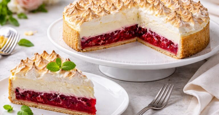Tenhle dort má v sobě všechno, co na dobrém dezertu milujeme – křehký ořechový základ, šťavnatou ovocnou vrstvu, jemný tvarohový krém a lehkou pusinku navrch. Každé sousto se postupně rozvine a nic nepřebíjí nic jiného. Právě tahle rovnováha chutí a struktur vychází z tradiční středoevropské cukrařiny, která si po generace zakládá na poctivých surovinách a trpělivém skládání jednotlivých vrstev.