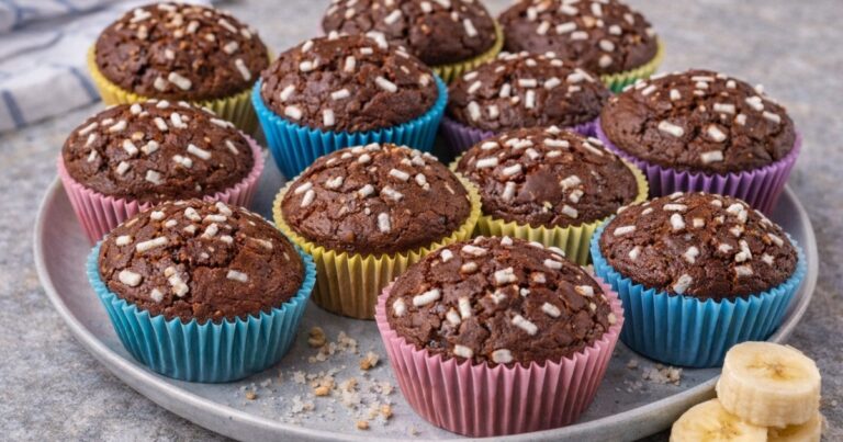 Část banánu můžete rozmačkat přímo do těsta pro ještě vláčnější strukturu. Místo banánu lze použít kousky čokolády, borůvky nebo nasekané ořechy. Muffiny skladujte v uzavřené nádobě při pokojové teplotě 1–2 dny, v lednici vydrží až 4 dny. Pro extra šťavnatost můžete do středu každého muffinu přidat lžičku čokoládové pomazánky nebo marmelády.