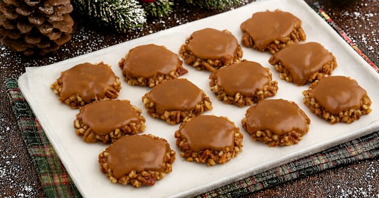 Karamelové placičky s pekanovými ořechy jsou prostě malý luxus, který si můžete dopřát bez velkého úsilí. Jsou sladké, křupavé a elegantní – přesně takové, aby rozzářily sváteční stůl i oči těch, kteří je ochutnají.