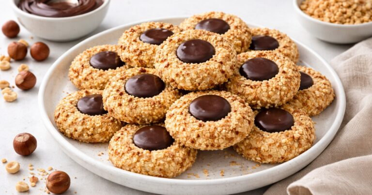 Tyhle drobné sušenky si vás získají tiše a bez velkých gest. Na první pohled působí nenápadně, ale jakmile je ochutnáte, rychle pochopíte, proč patří mezi ty recepty, které se doma opakují znovu a znovu. Křehké těsto je jemné, lehce sladké a krásně doplňuje oříškový povrch, zatímco čokoláda uprostřed dodá každému kousku malý, ale výrazný akcent. Jsou přesně tím typem cukroví, které si vezmete ke kávě, aniž byste nad tím dlouze přemýšleli – a pak sáhnete ještě jednou.