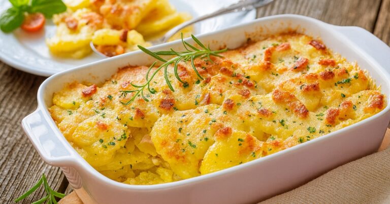 - Vylepšení: Do zálivky můžete přidat nastrouhaný sýr, česnek nebo trochu dijonské hořčice. Brambory lze nahradit batáty nebo cuketou pro odlehčenou verzi.