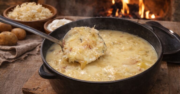 Tradiční bílá polévka z kysaného zelí a mléka voní domovem a klidem. Je jemná, krémová a zasytí i bez masa, což z ní dělá ideální volbu pro sváteční stůl nebo poctivý rodinný oběd.