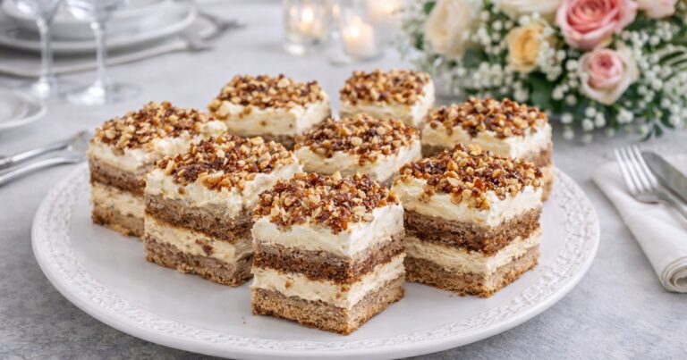 Bez těchto řezů se neobejde snad žádná poctivá rodinná oslava. Jsou přesně tím dezertem, který zmizí ze stolu jako první, a ještě dlouho poté se o něm mluví. Spojují v sobě nadýchaný ořechový korpus, jemný vanilkový krém, bohatý karamel a lehký smetanový vršek, který celé dílo krásně odlehčí. Výsledkem je dortový zákusek, který působí slavnostně, ale přitom zůstává domácí a přívětivý.