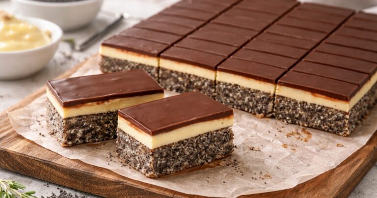Makové řezy jsou přesně ten typ dezertu, který si na nic nehraje, a přesto působí slavnostně. Neoslní křiklavým vzhledem, ale spoléhají na chuť, která je plná, jemná a zapamatovatelná. Mák dodává korpusu lehce oříškový tón, krém všechno krásně zjemní a čokoládová poleva celý dezert uzavře tak, že máte chuť si dát ještě jeden kousek. Právě tahle vyváženost z nich dělá moučník, který se hodí jak pro návštěvu, tak na klidné posezení doma.