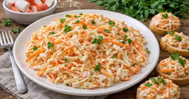 Tenhle salát si rychle najde své místo v každodenním vaření. Využijete ho jako rychlou večeři, pohoštění pro návštěvu i jako pomazánku na chlebíčky, která z talíře mizí dřív, než stihnete uvařit kávu. A co je na tom krásné — časem si ho každý upraví podle své chuti. Někdo přidá česnek, jiný pár kapek citronu, další vymění část majonézy za jogurt a vytvoří lehčí verzi.