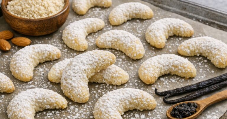 Německé vanilkové rohlíčky s mandlemi jsou přesně ten druh cukroví, který si zamilujete na první ochutnání. Křehké, voňavé, jemné – rozplývají se na jazyku a voní tak, že máte chuť sníst je ještě teplé. A co je na nich nejlepší? Jsou jednoduché, zvládne je i začátečník, a přitom vypadají jako z pohádky.