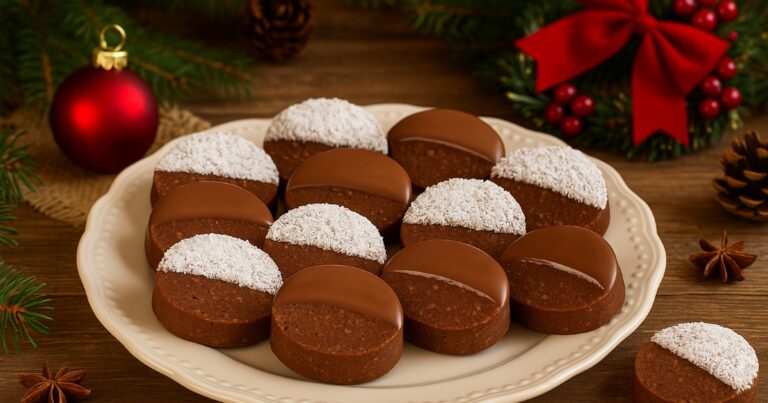 Nepečená polomáčená kolečka s kokosem jsou přesně ten druh cukroví, který si zamilujete pro jeho jednoduchost, rychlost a výsledek, který vypadá jako z cukrárny. Jsou jemná, čokoládová, s nádechem exotiky díky kokosu – a hlavně, zvládne je připravit opravdu každý. Pokud hledáte něco, co ozvláštní váš vánoční stůl a přitom vás nezatíží dalším pečením, tohle je recept přesně pro vás.
