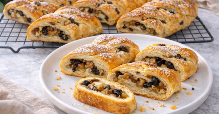 Nadýchaný pletený závin s rozinkami patří k pečivu, které v sobě spojuje domácí pohodu, vůni čerstvě upečeného těsta a jemnou sladkost, která není přehnaná. Právě díky tomu se pohybuje na pomezí dezertu a běžného pečiva – můžete ho servírovat ke snídani, k odpolední kávě, ale klidně i jako lehce sladkou tečku po obědě. Není to zákusek, který by zatěžoval, spíš připomíná staré dobré kynuté pečení, jaké známe z venkova, jen v modernějším a hravějším provedení.