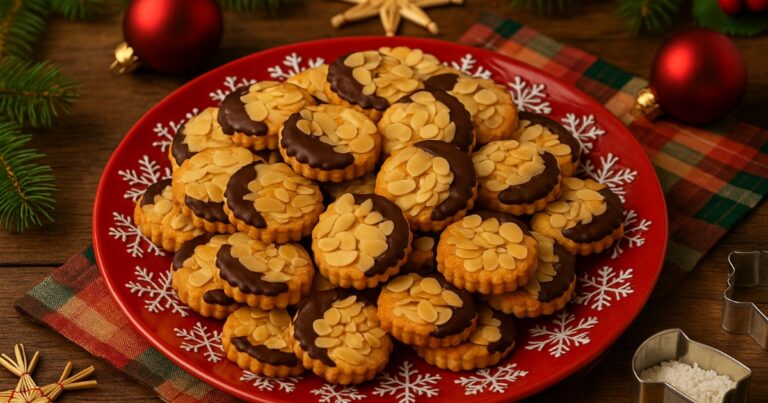 Polomáčená kolečka s mandlemi jsou přesně to cukroví, které na vánočním stole nejen krásně vypadá, ale i výborně chutná. Křupavý základ, jemná mandlová chuť a lesklá čokoládová poleva tvoří dohromady kombinaci, která potěší oko i chuťové buňky. A co je na nich nejlepší? Jsou jednoduchá, rychlá a přitom působí jako z cukrářské vitríny.