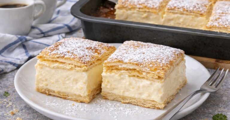 Vrstvené moučníky mají v evropské kuchyni dlouhou historii. Vznikaly tam, kde cukráři chtěli spojit kontrast textur – křehké, křupavé těsto a krémovou, hebkou náplň. A právě tato hra mezi strukturami dělá z tohoto dezertu něco, co se neomrzí ani po několika soustech. Každé zakrojení nabídne trochu jiný poměr krému a těsta, a tím i trochu jiný zážitek.