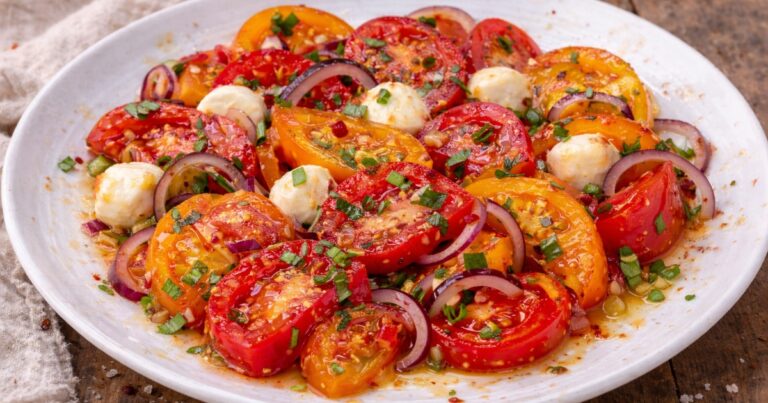 Rajčatový salát na korejský způsob je jednoduchý, ale chuťově výrazný. Šťavnatá rajčata, sladkokyselá zálivka a lehká pikantnost vytvářejí svěží kombinaci, kterou si zamilujete.