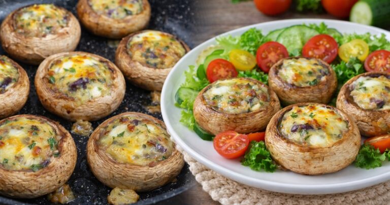 Na tomto receptu je skvělé, že se dá pokaždé trochu obměnit. Někdy přidáte česnek, jindy kousek slaniny, šunky nebo sušených rajčat, podle toho, co máte zrovna doma. Sýr můžete vyměnit podle chuti, klidně za výraznější nebo jemnější variantu, a bylinky přizpůsobit sezóně. Pokud chcete žampiony pojmout lehčeji, vystačíte si jen s cibulkou, vejcem a hrstí čerstvých bylinek. A když přijde slavnostnější příležitost, stačí přidat trochu smetany nebo posypat povrch křupavou strouhankou s máslem a rázem máte malé gurmánské sousto.