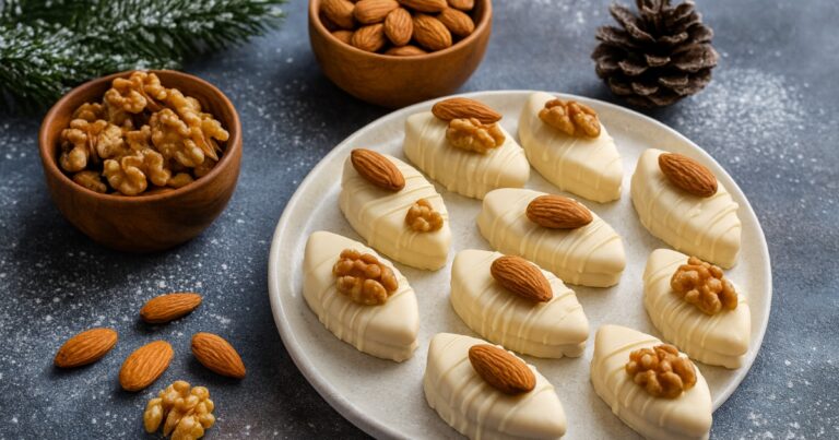 Slzy v bílé čokoládě se dvěma druhy ořechů patří mezi ty kousky, které na vánočním stole prostě nejde přehlédnout. Elegantní tvar, lehké kokosové těsto, hladká čokoládová poleva a křupavé ořechy spolu vytvářejí harmonii chutí i textur. Vypadají luxusně, skoro jako z vitríny cukrárny, ale jejich příprava je překvapivě jednoduchá a zvládnete ji bez zbytečného stresu.