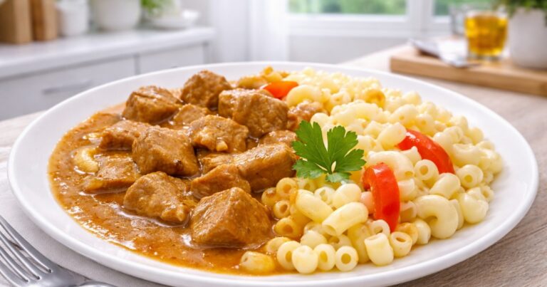 Šťavnaté vepřové kostky v husté omáčce mají výraznou chuť a jemnou strukturu. Recept, který promění běžné suroviny v syté a velmi příjemné domácí jídlo.