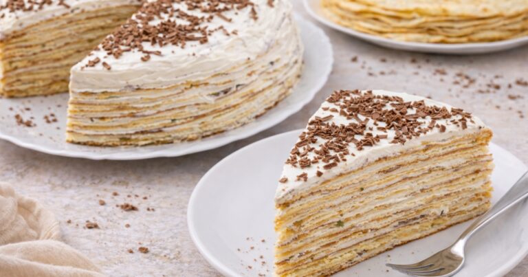 Vrstvený palačinkový dort na první pohled působí jednoduše, skoro až skromně, ale jakmile ho rozkrojíte, ukáže se v celé své kráse. Jemné světlé korpusy připomínající palačinky se střídají s lehkým smetanovým krémem a dohromady vytvářejí dort, který se hodí ke klidnému odpolednímu čaji stejně dobře jako na narozeninový stůl. Právě tahle univerzálnost z něj dělá ideální recept pro chvíle, kdy chcete něco efektního, ale nechcete trávit hodiny v kuchyni.