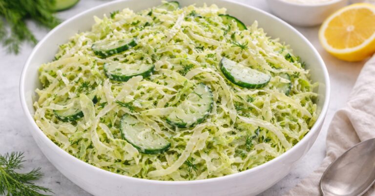 Zelný salát s okurkou a žloutkovým dresingem je přesně ten typ jednoduchého jídla, které překvapí. Obyčejné zelí a vejce povýší krémový dresing na svěží, lehce pikantní pochoutku.